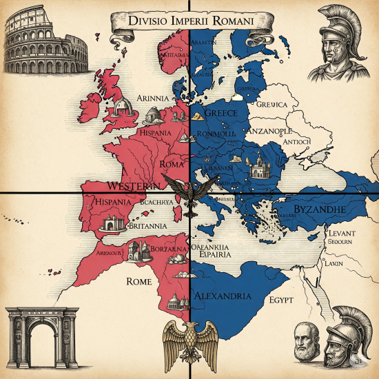 Dioklecjan, pod koniec kryzysowego III w. przywrócił stabilność i jedność cesarskiej władzy, ale doskonale zdawał sobie sprawę, że zachowanie jedności Cesarstwa wymaga decentralizacji i podziału władzy. Utworzenie tetrarchii było odpowiedzią na kryzys zarządzania tak wielkim i różnorodnym Cesarstwem. Rzeczywistość ostatecznie wymusiła podział w 395 r. dokonany przez cesarza Teodozjusza. Pomimo tego zachowano doktrynę jedności Cesarstwa, która nie była tylko nic nie znaczącą ideologią, ale żywą świadomością nie tylko dziedzictwa i tradycji, ale jedności owocującej solidarnością i dążeniem do jedności także w wymiarze politycznym i militarnym. Cesarstwo, choć podzielone, było jednym państwem rządzonym przez odrębnych cesarzy. Ten podział zaowocował odrębnymi strategiami. Cesarstwo Zachodnie przyjęło strategię otwartości na proces germanizacji armii i napływ germańskich osadników, ostatecznie zakończony jego zniszczeniem, a Wschodnie wybrało strategię zamknięcia, przeciwstawienia się zewnętrznym zagrożeniom i obrony własnych granic. To przyczyniło się do przetrwania Bizancjum o prawie 1000 lat dłużej.
