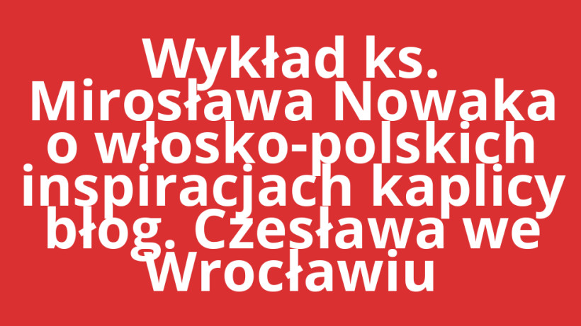 Wykład ks. Mirosława Nowaka o włosko-polskich inspiracjach kaplicy błog. Czesława we Wrocławiu