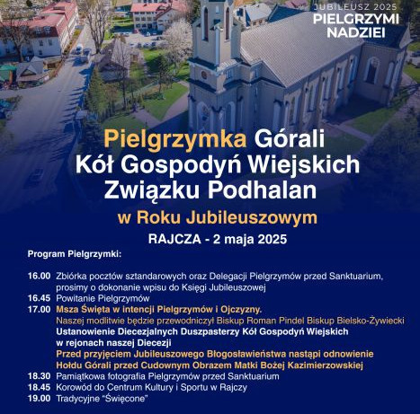 2 MAJA AD 2025 - PIELGRZYMKA GÓRALI, KÓŁ GOSPODYŃ WIEJSKICH I ZWIĄZKU PODHALAN DO RAJCZY!