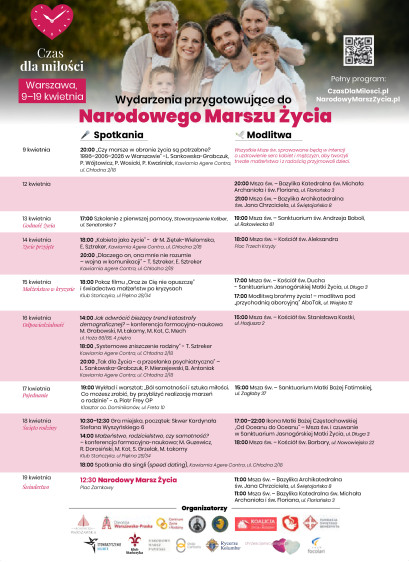 Strona główna Aktualności Czas dla Miłości 9-19kwietnia - wydarzenia przygotowujace do Narodowego Marszu Życia Data publikacji: 2026-04-09 Aktualności KdŻiR Tematy: kdżir narodowy marsz życia msze świete Poprzedni wpis Premiera filmu Maryja. Matka Papieża już za tydzień (17 kwietnia) w ponad 180 kinach! Następny wpis Edukacja zdrowotna obowiązkowa, ocena funkcjonalna wkracza do szkół; RODZINNY SERWIS