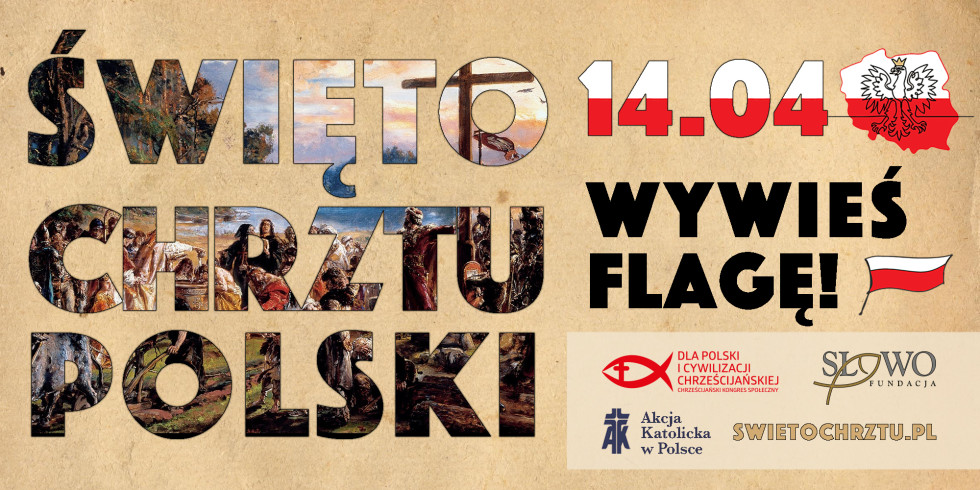 ChKS z inicjatorami akcji Fundacją „Słowo” i Akcją Katolicką w Polsce zachęcamy do wystosowania apelu do Rodaków o wywieszanie w tym dniu flagi państwowej, w celu podkreślenia wagi Święta Chrztu Polski w naszej Ojczyźnie. Będziemy wdzięczny za umieszczenie również na stronach internetowych, w mediach społecznościowych plakatu zachęcającego do uroczystego świętowania narodzin naszego Państwa poprzez przyjęcie przez Mieszka I chrztu. Szersze informacje na stronie swietochrztu.pl poświęconej Świętu Chrztu Polski.