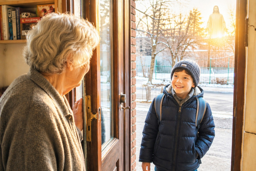 Pewna starsza kobieta mieszkała sama. Po śmierci męża coraz bardziej zamykała się w sobie. Rzadko wychodziła z domu, przestała odbierać telefony, a w sercu nosiła myśl: „Nikomu już na mnie nie zależy”. W tej samej kamienicy mieszkał chłopiec, który codziennie rano, idąc do szkoły, mówił jej przez drzwi: „Dzień dobry, pani Anno!”. Na początku nie odpowiadała. Potem tylko cicho mruczała. Aż pewnego dnia uchyliła drzwi i zapytała: