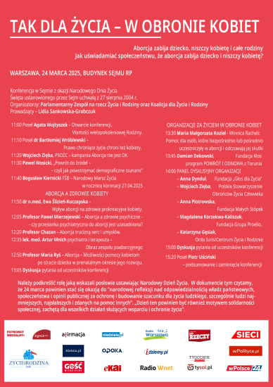 Wydarzenie: Konferencja w Sejmie - TAK dla ŻYCIA - W OBRONIE KOBIET