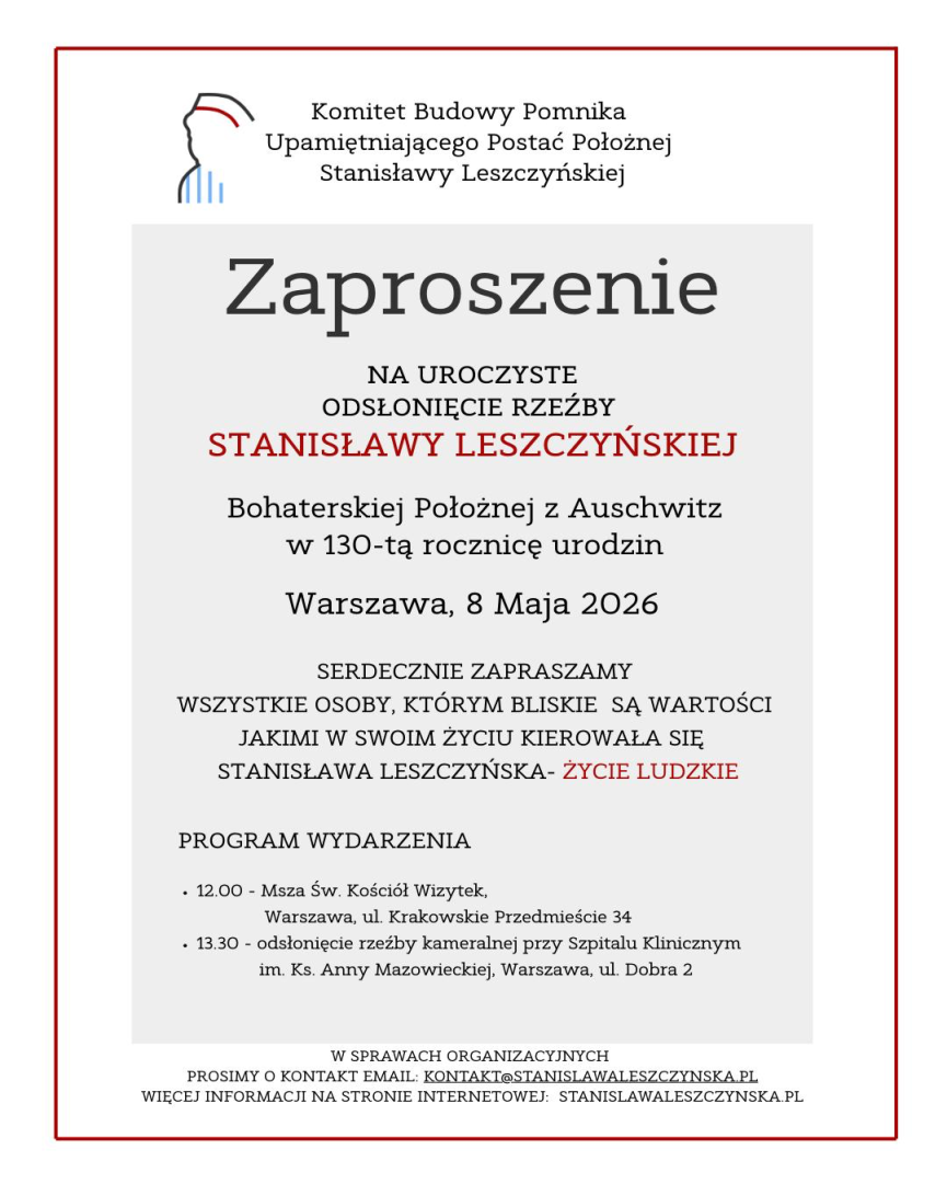 Serdecznie zapraszamy wszystkie osoby, którym bliskie są wartości jakimi w swoim życiu kierowała się Stanisława Leszczyńska - ŻYCIE LUDZKIE.