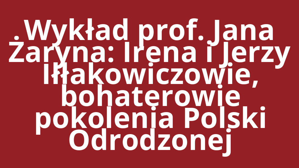 Wykład prof. Jana Żaryna: Irena i Jerzy Iłłakowiczowie, bohaterowie pokolenia Polski Odrodzonej