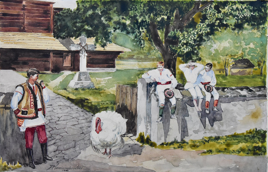 –,„Huculi z indykiem”, akwarela, prawdopodobnie 1924 r.,