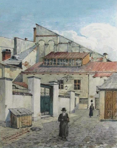 – „Synagoga pod Złotą Różą we Lwowie”, akwarela z końca XIX wieku,