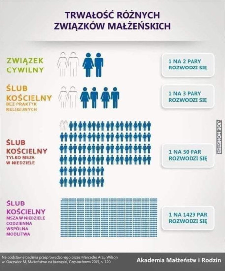 Po ślubie kościelnym, przy coniedzielnej Mszy św. i przy codziennej wspólnej modlitwie małżonków: rozpada się jedna para na 1429 par!