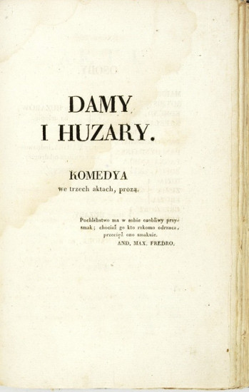KOMEDA ALEKSANDRA FREDRY W TRZECH AKTACH, DAMY I HUZARY.