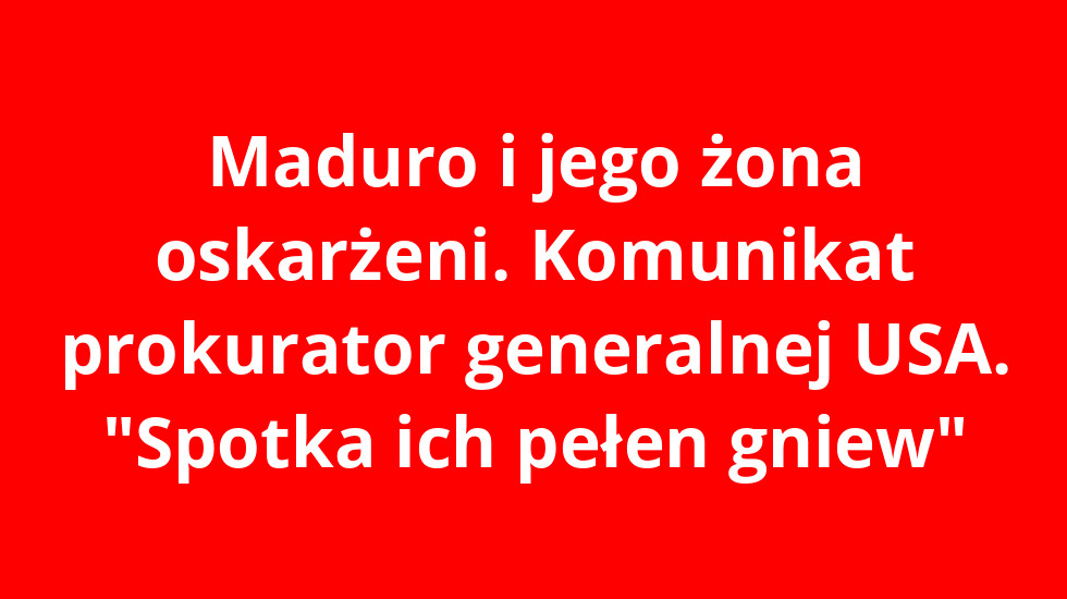Nicolas Maduro i jego żona, Cilia Flores, zostali oskarżeni w Sądzie Okręgowym Południowego Dystryktu Nowego Jorku - przekazała prokurator generalna Stanów Zjednoczonych. "Wkrótce spotka ich pełen gniew amerykańskiego wymiaru sprawiedliwości na amerykańskiej ziemi" - dodała Pamela Bondi.