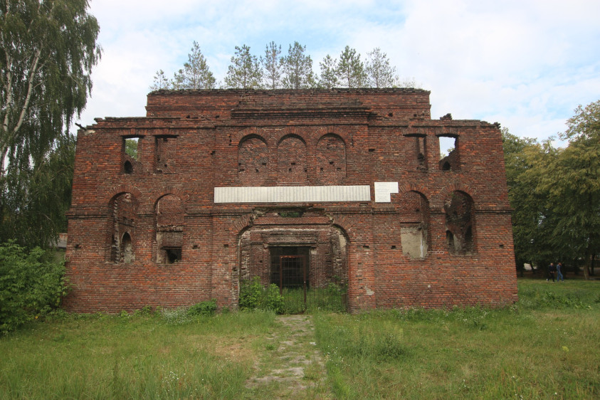 Tego szczęścia nie miała synagoga, która obecnie ruina swym wygładem przypominająca modernistyczną synagogę z początków XX wieku. Budowla składa się z sali głównej na planie kwadratu i dwukondygnacyjnego babińca. Po drugiej wojnie światowej urządzono tu magazyn produktów spożywczych. Opuszczona w latach pięćdziesiątych popadła w ruinę. Dzisiaj po zapadnięciu dachu stan przedstawia się tragicznie. Pomieszczenia porośnięte krzewami i trawą wywołują przygnębienie. Wejście zabezpieczone bramą i kratą. Z pobliskiego już nieistniejącego cmentarza żydowskiego przeniesiono kilkanaście macew ( stelanagrobna w formie pionowej płyty). W dniach 6-8 lipca 1941 Niemcy z ukraińskimi policjantami dokonali mordów Żydów rozstrzeliwując 100 przedstawicieli żydowskiej inteligencji. W samej synagodze spalono 19 Żydów