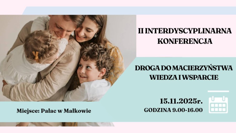 W sobotę, 15 listopada 2025 roku, w godzinach od 9.00 do 16.00, w Pałacu w Małkowie odbędzie się II Interdyscyplinarna Konferencja „Droga do macierzyństwa. Wiedza i wsparcie”. Wydarzenie poświęcone będzie tematyce zdrowia prokreacyjnego, naprotechnologii oraz wsparciu kobiet i rodzin pragnących potomstwa.
