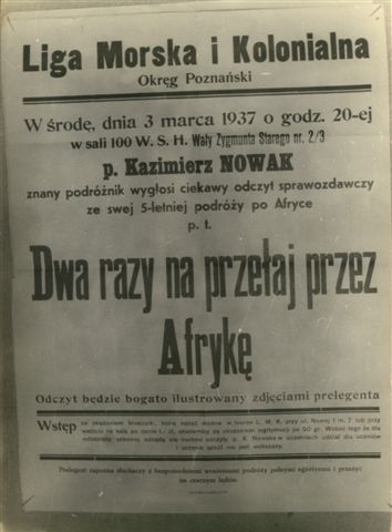 W końcu w 1931 roku wyruszył do Afryki, którą przemierzył tam i powrotem. W przeciągu 5 lat pokonał 40 tysięcy kilometrów rowerem, pieszo, konno, na wielbłądzie, czółnem, łodzią i pociągiem. Jego relacje publikowane były w czasopismach takich, jak: „Światowid”, „Na Szerokim Świecie”, „Naokoło świata”, „Ilustracja Polska” i „Przewodnik Katolicki”. Artykuły publikowała także prasa a francuska, włoska i brytyjska. Pisał barwnie załączając fotografie. Wygłaszał odczyty bogato ilustrowane przezroczami.