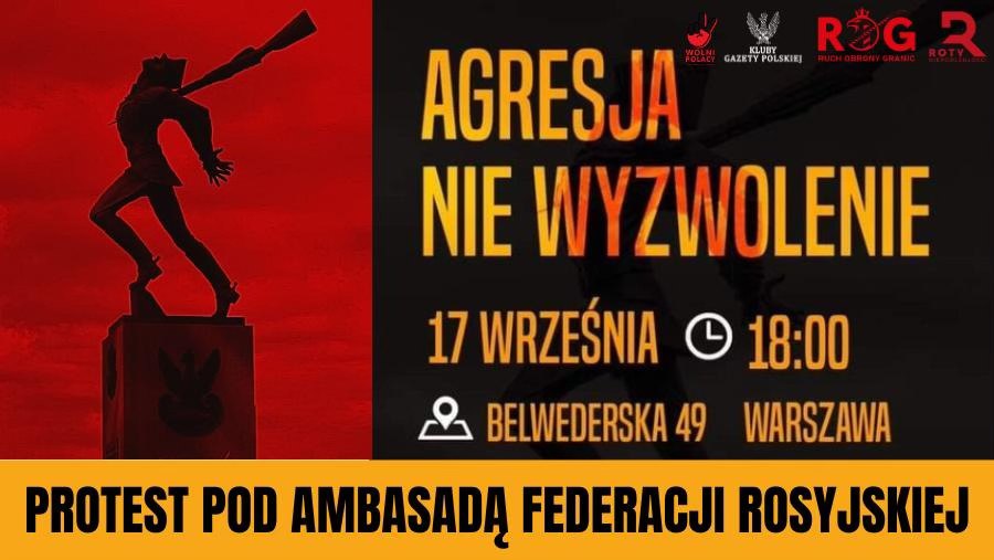17 września 2025 roku o 18:00 Roty Marszu Niepodległości, Straż Narodowa, Ruch Obrony Granic, Kluby Gazety Polskiej, Wolni Polacy, organizują przed rosyjską ambasadą w Warszawie (ul. Belwederska 49) demonstracje w rocznice rosyjskiej agresji na Polskę 1939.