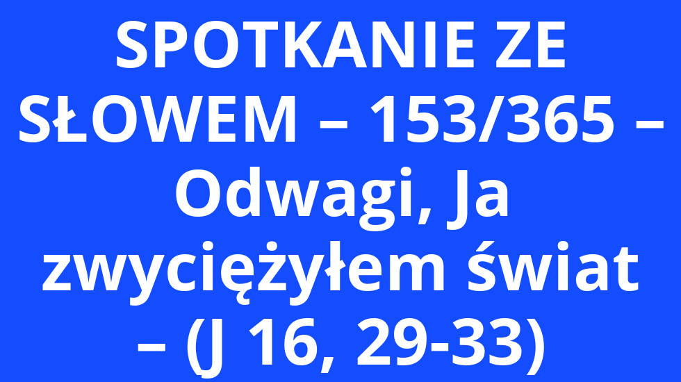 SPOTKANIE ZE SŁOWEM – 153/365 – Odwagi, Ja zwyciężyłem świat – (J 16, 29-33)