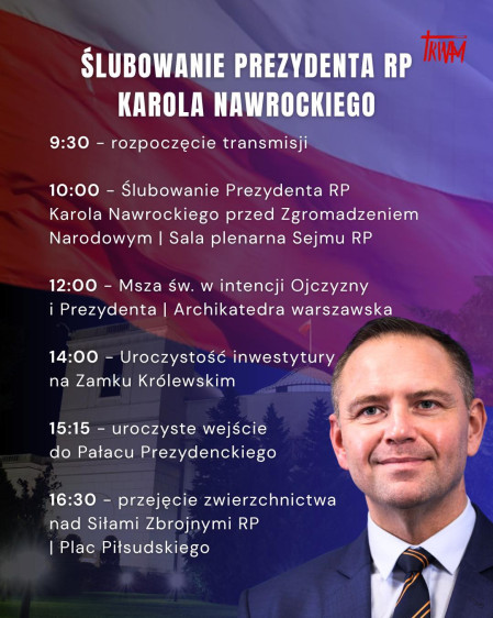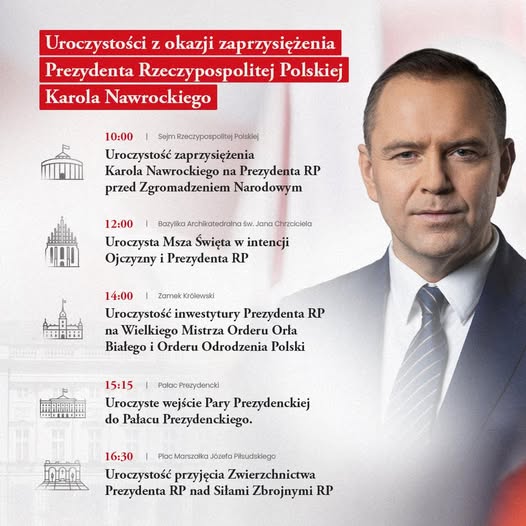 10:00 – Ślubowanie Prezydenta RP Karola Nawrockiego przed Zgromadzeniem