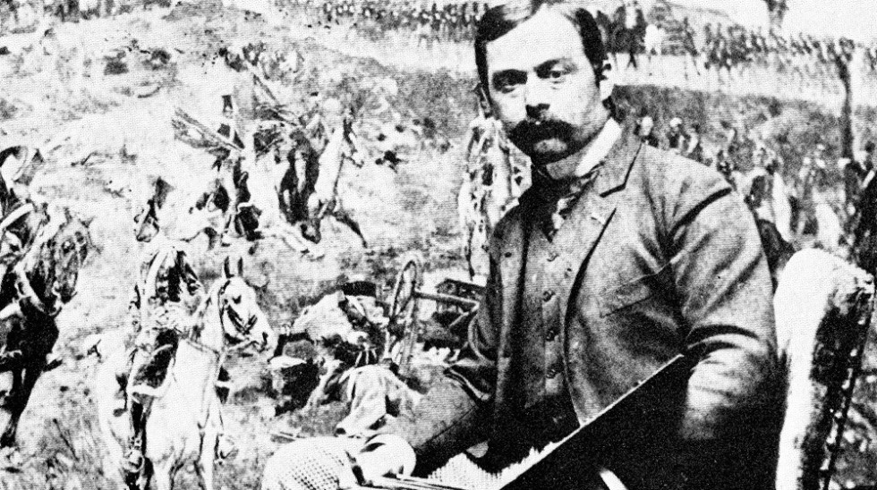 Wojciech Kossak maluje Pobojowisko pod Iganiami, 1897. Fot: autor nieznany, domena publiczna.